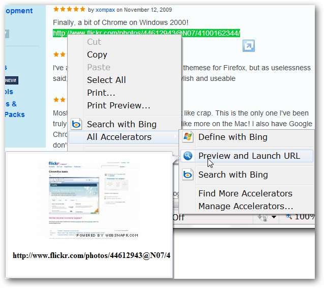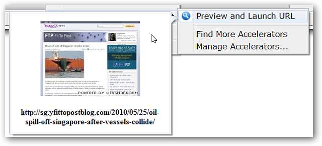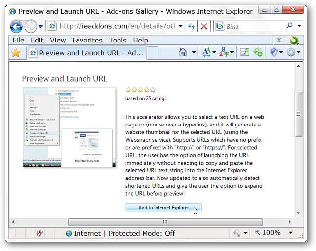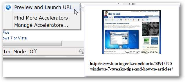 Lisää Esikatselu ja käynnistys URL-kiihdytin Internet Explorer 8: een