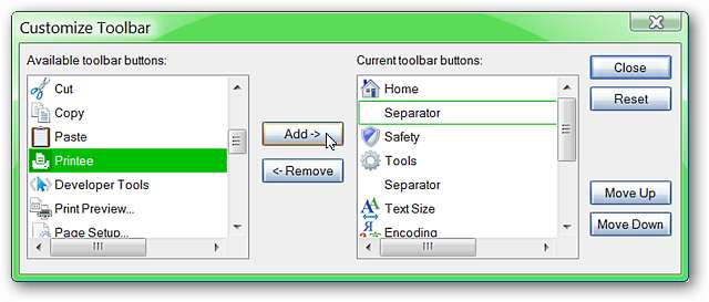 Asennus on nopeaa ja yksinkertaista, ja vain neljä asennusikkunaa käy läpi. Kun olet asentanut Printee for IE: n, sinun on lisättävä työkalurivipainike työkaluriville.