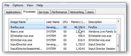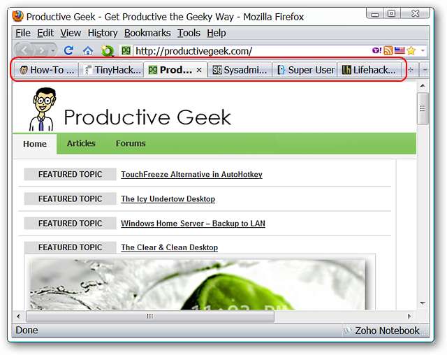 Kun sinulla on muutama välilehti, asiat eivät ole niin pahoja. Mutta jos sinulla on jotain yli 30 välilehteä auki, Firefoxilla on varmasti paljon suurempi muistinjälki. Tällä hetkellä kaikki kuusi välilehteä ovat aktiivisia esimerkissämme ...