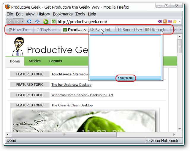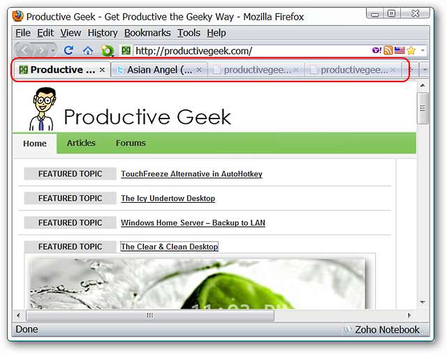 Kun laajennus on asennettu, näet välilehtipalkissa melkoisen eron. Viisi kuudesta verkkosivustosta on kirjaimellisesti odotustilassa ja näyttää noin: tyhjä.