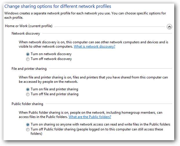 Mene Windows 7 -laitteessa Ohjauspaneeli \ Kaikki ohjauspaneelin kohteet \ Verkko- ja jakamiskeskus ja napsauta sitten Muuta lisäasetuksia jakamisasetuksille.