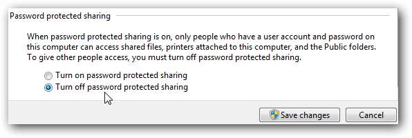 Poista salasanasuojaus käytöstä, jos haluat kenenkään käyttäjän pääsyn julkisiin jakoihin. Tämä sijaitsee Jakamisen lisäasetuksissa luettelon lopussa.
