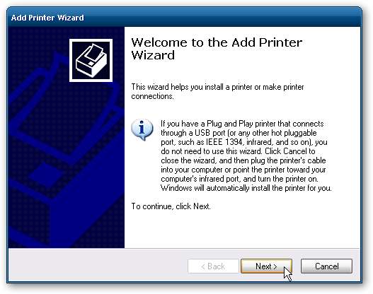 Määritä jaettu tulostin XP-käyttöjärjestelmässä siirtymällä Käynnistä-valikon kohtaan Tulostimet ja faksit ja käynnistämällä ohjattu tulostimen lisäystoiminto.