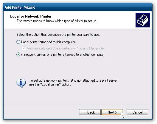 Valitse nyt "Verkkotulostin tai toiseen tietokoneeseen liitetty tulostin" paina sitten Seuraava.