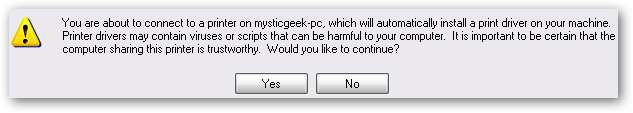 Joissakin tapauksissa joudut asentamaan x86 XP -ohjaimet jaetulle tulostimelle, koska Windows 7 -ohjaimet eivät ole yhteensopivia XP: n kanssa. Kun kaikki on asennettu, avaa Tulostimet ja faksit löytääksesi jaetun tulostimen.