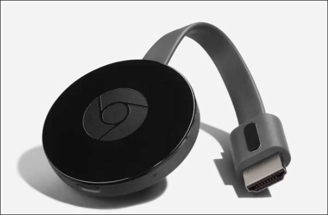 - Google Chromecast: Se on pieni himmeä ympyrä, joka on kiinnitetty lyhyeen HDMI-kaapeliin. Se vain roikkuu siellä television takana. Ei paljon siitä, että pidät siitä.