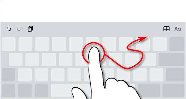 IPadissa on kaksi tapaa käynnistää virtuaalisen ohjaustilaan. Ensimmäinen on aivan kuten iPhonessa: Aseta ja pidä sormeasi varovasti näytöllä näytöllä. Tai voit yksinkertaisesti sijoittaa kaksi sormea näytöllä näppäimistössä samanaikaisesti.