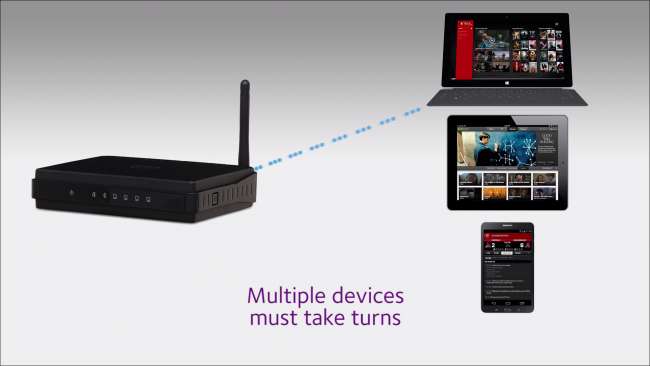Yleensä et huomaa hidastumista. Vaikka SU-MIMO-reitittimet voivat avata vain yhden virran kerrallaan, ne tekevät sen hyvin nopeasti peräkkäin, mikä paljaalla silmällä näyttää kiinteältä tietovirralta. Lainataksesi analogiaa, ajattele sitä kuin Pez-annostelija, joka on kiinnitetty karuselliin: kaikki ympyrän ympärillä seisovat saavat lopulta karkkia, mutta karusellin on vielä suoritettava yksi täysi kierto, ennen kuin kaikki verkon jäsenet ovat tyytyväinen.