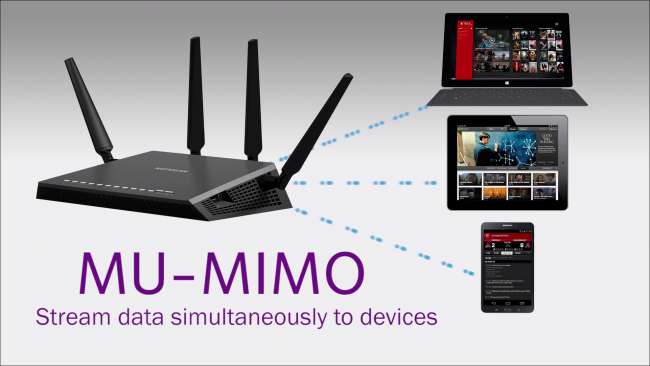 ”MU-MIMO” -reitittimet (toisaalta ”Useita käyttäjiä, Useita syötteitä, Useita lähtöjä”) pystyvät hajottamaan tämän kaistanleveyden erillisiksi erillisiksi virroiksi, jotka jakavat yhteyden tasaisesti sovelluksesta riippumatta. MU-MIMO -reitittimiä on kolmea makua: 2 × 2, 3 × 3 ja 4 × 4, mikä viittaa niiden streamien lukumäärään, jotka ne voivat luoda kullekin kotitalouden laitteelle. Tällä tavalla MU-MIMO-karuselli voi lähettää Pezin samanaikaisesti neljään suuntaan. Ilman liian teknistä, tämä on kuin jokainen laite saisi oman "yksityisen" reitittimen, yhteensä neljä kertaa 4 × 4 MU-MIMO-latauksessa.