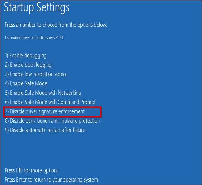 Voit poistaa ohjaimen allekirjoittamisen käytöstä kehityksen aikana 64-bittisissä Windows-versioissa liitä ytimen virheenkorjaus tai käytä erityistä käynnistysvaihtoehtoa, joka ei jatku järjestelmän uudelleenkäynnistyksen aikana.