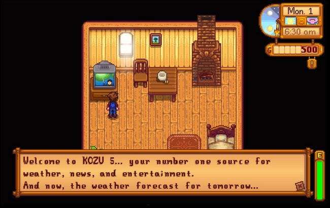 Malgré l'ambiance de retour à la nature du jeu et la forte poussée vers une existence terre-à-terre basse technologie dans votre nouvelle maison de la vallée, la télévision de votre ferme est vraiment utile. Selon le jour de la semaine, vous pouvez accéder à un bulletin météo, à un horoscope ou à une chaîne de cuisine ou à une chaîne de plein air.