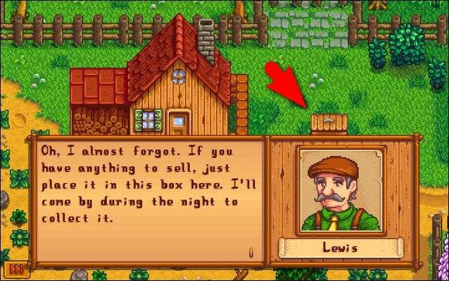 Lorsque vous arrivez pour la première fois à Stardew Valley, le maire très sympathique s'arrête pour se présenter. Entre autres choses, il vous dit que vous pouvez mettre n'importe quel objet vendable dans le bac à bois juste devant votre ferme et il le transportera aux différents marchés pour vous.