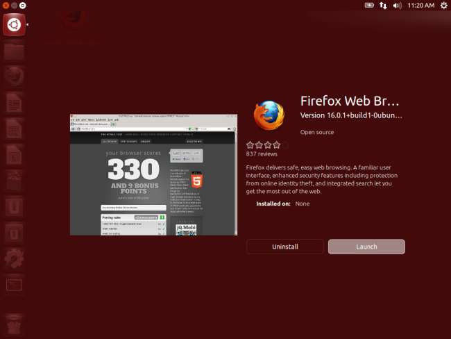 Vous pouvez maintenant cliquer avec le bouton droit sur n'importe quoi dans le tableau de bord d'Ubuntu pour afficher un aperçu en plein écran. Par exemple, si vous cliquez avec le bouton droit sur l'icône d'une application, vous verrez des informations sur l'application, ainsi qu'une capture d'écran et un bouton de désinstallation. Cliquez avec le bouton droit de la souris sur une image ou un document et vous en verrez un aperçu.