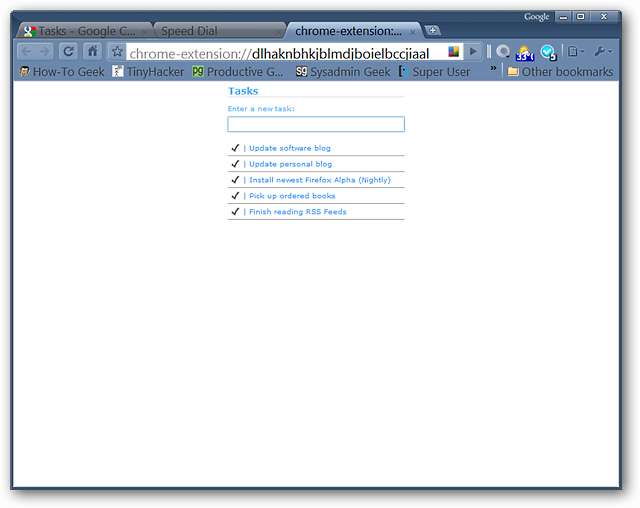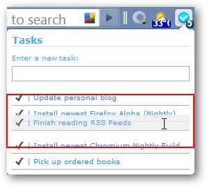En quelques instants, vous pouvez avoir votre liste de tâches prête à l'emploi. Notez qu'il y a aussi un «indicateur numérique» attaché au «bouton de la barre d'outils» afin que vous sachiez toujours combien de tâches il vous reste à accomplir.