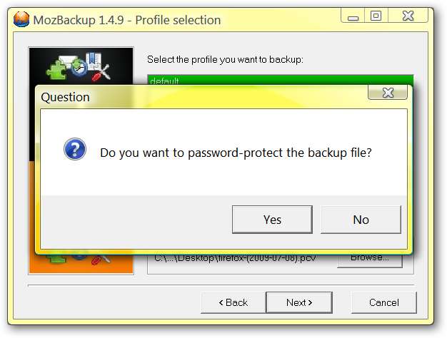 Dans la deuxième fenêtre, il vous sera demandé de choisir entre «Sauvegarder un profil» ou «Restaurer un profil». Vous devrez également sélectionner le logiciel particulier que vous souhaitez sauvegarder. Pour notre exemple, nous sauvegardons le profil de Mozilla Firefox 3.5 (en-GB). Cliquez sur «Suivant» lorsque vous avez terminé.