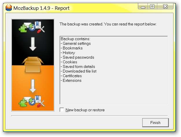Une fois MozBackup terminé, vous verrez cette fenêtre affichant une liste de ce qui a été inclus dans le fichier de sauvegarde.