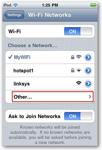 Pour vous connecter à un réseau avec un SSID masqué, sélectionnez Autre.