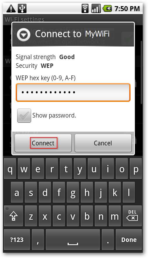 Si vous choisissez un réseau nécessitant un mot de passe, vous serez invité à le saisir. Saisissez votre mot de passe et sélectionnez Rejoindre.