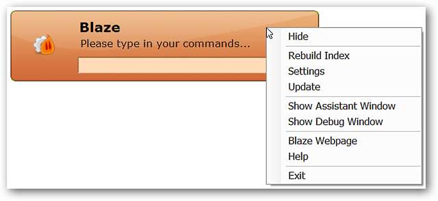 Blaze est simple à installer sur votre ordinateur et une fois démarré, voici à quoi il ressemble. Pour accéder à Blaze, utilisez la séquence de raccourcis clavier… la valeur par défaut est «Alt + Ctrl + Espace» mais peut être facilement modifiée pour mieux répondre à vos besoins dans les paramètres.