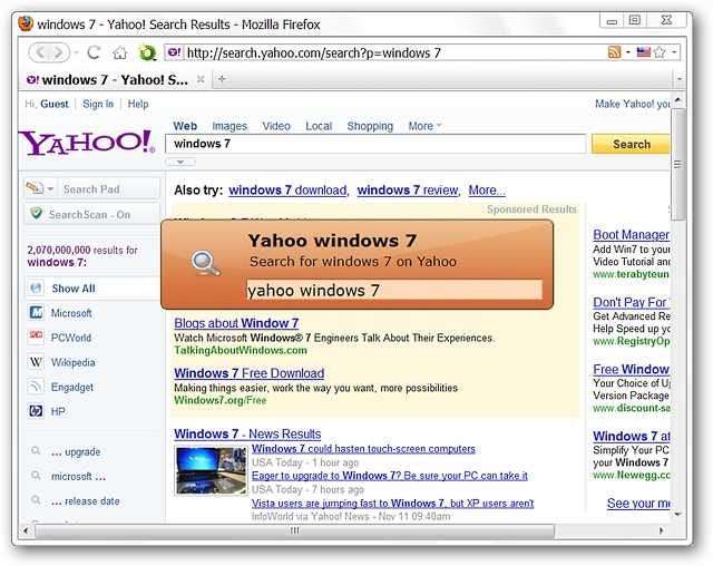 Ou recherchez un terme à l'aide de votre service de recherche préféré. Tapez simplement le service de recherche que vous souhaitez utiliser, laissez un espace vide, puis entrez votre terme de recherche.