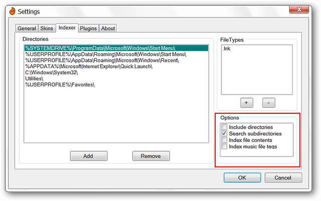 Apportez les changements ou modifications souhaités sur ce qui est ajouté à l'index dans la «Zone d'indexation». Dans le coin inférieur droit, vous pouvez choisir d'indexer des «éléments» supplémentaires pour chaque catégorie dans la partie principale de la fenêtre.