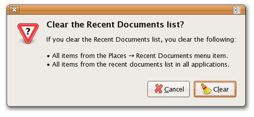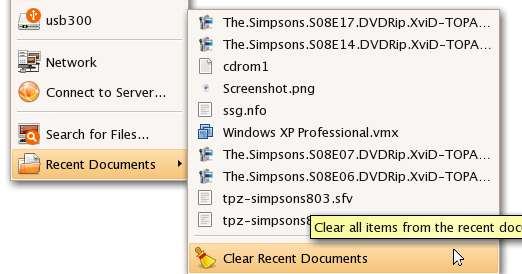 Allez simplement dans le menu Lieux et Documents récents \ Effacer les documents récents