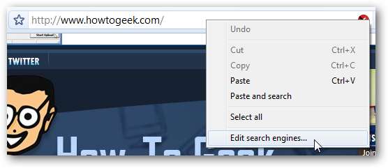 Si vous souhaitez modifier les sites que Chrome vous permet automatiquement de rechercher ou d'ajouter un autre site et un mot clé à la liste, cliquez avec le bouton droit sur la barre d'adresse et sélectionnez Modifier les moteurs de recherche .