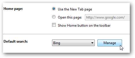 Sinon, ouvrez la boîte de dialogue Options et cliquez sur Gérer à côté de l'option Recherche par défaut.