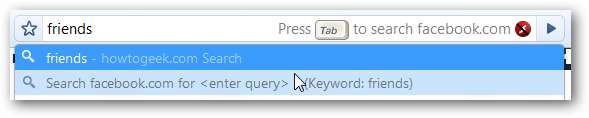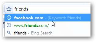 Maintenant, lorsque vous entrez votre mot-clé dans le champ d'adresse, il ouvrira ce site comme option par défaut. Par exemple, nous pouvons ouvrir Facebook.com en tapant simplement copains . Vous pouvez rendre cela encore plus simple et n'entrer qu'un seul caractère comme mot-clé pour un moyen ultra rapide d'accéder à vos sites préférés.