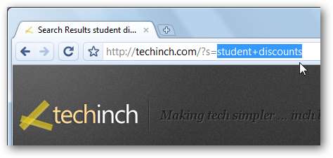 Cela devrait automatiquement amener Chrome à créer un mot-clé de recherche pour ce site; si ce n'est pas le cas, vous pouvez toujours l'ajouter manuellement. Regardez dans la barre d'adresse et notez où votre requête de recherche est répertoriée dans l'adresse.
