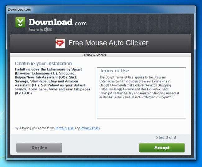 Comme d'habitude, cela commence par faire le énorme erreur d'aller sur Download.com et le téléchargement de logiciels gratuits. Quiconque commet l'erreur de cliquer sur Accepter tout au long du programme d'installation se retrouvera avec un ordinateur beaucoup plus lent, plein de crapware et de tristesse.