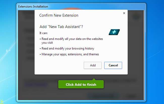 Une fois que vous avez commis l'erreur de cliquer sur ce bouton Accepter et de fermer le programme d'installation, cette fenêtre s'affichera un peu plus tard, qui charge automatiquement la page des extensions de Google Chrome, puis cliquez sur le bouton d'installation pour vous.