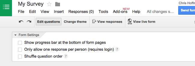 Et, comme pour les autres fichiers Google Docs, vous pouvez inviter des personnes à travailler sur l'enquête avec vous et travailler ensemble en temps réel .