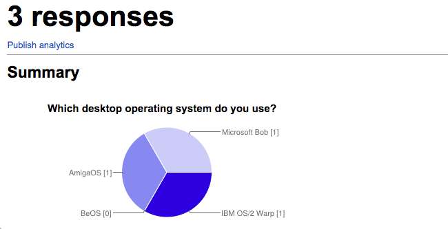 Contrairement à divers services de sondages en ligne, Google ne limite pas le nombre de réponses que vous pouvez recevoir. Ils n'essaient pas de vous vendre à un service de sondage payant sophistiqué.
