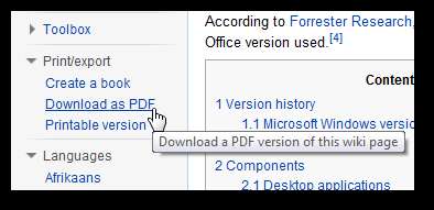 Souhaitez-vous enregistrer un article Wikipédia préféré au format PDF pour le lire hors ligne ou le partager avec vos amis? Bien sûr, vous pouvez simplement imprimer un article comme PDF directement depuis votre navigateur , mais cela ne sera pas très joli. Cependant, nous pouvons utiliser de nouveaux outils intégrés à Wikipédia pour créer automatiquement une copie PDF d'un article qui ressemble plus à un livre traditionnel qu'à une simple impression Web. Pour ce faire, cliquez sur le Imprimer / exporter lien dans la barre latérale gauche de Wikipédia lorsque vous êtes sur un article que vous souhaitez enregistrer.