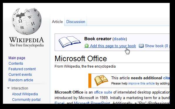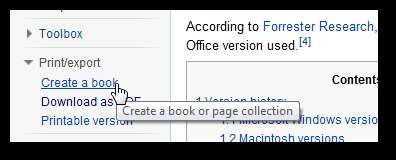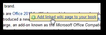 Cette nouvelle barre de création de livres vous suivra sur Wikipedia maintenant, vous pouvez donc visiter n'importe quelle page et l'ajouter à votre eBook. Vous pouvez rapidement ajouter des articles connexes dans les articles que vous ajoutez, car vous verrez un nouveau Ajouter une page wiki liée à votre livre info-bulle lorsque vous survolez les liens dans les articles. Cliquez dessus et cette page sera ajoutée à votre eBook sans avoir à visiter la page.