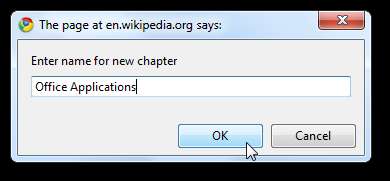 Maintenant, entrez simplement un nom pour le chapitre dans la fenêtre contextuelle, et cliquez sur D'accord pour l'ajouter à votre livre.