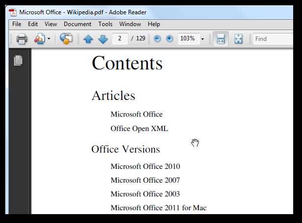 Voici notre PDF dans Adobe Reader dans notre navigateur. Wikipedia génère de très beaux fichiers PDF qui seront agréables à lire sur votre ordinateur, votre lecteur de livre électronique ou même à imprimer et à partager.