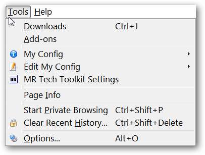 Pour notre exemple, nous avons décidé de nous concentrer sur le «Menu Outils» de notre navigateur Firefox. Voici le menu avant l'édition…