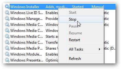Faites défiler jusqu'à Windows Installer et arrêtez le service…