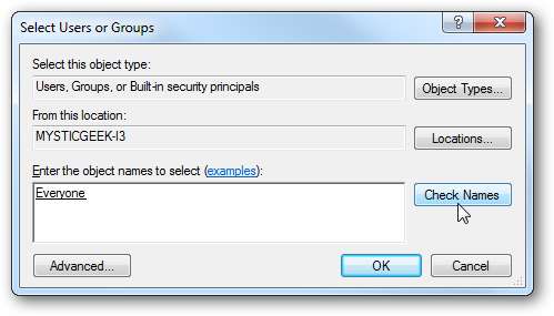 Tapez maintenant Toutes les personnes dans la zone Noms des objets et cliquez sur Vérifier les noms qui le soulignera comme indiqué ici, puis cliquez sur OK.