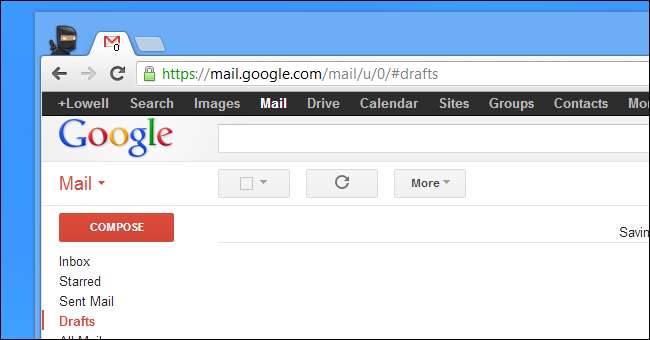 Le paramètre #inbox que vous pouvez voir dans la barre d'adresse indique à Gmail quelle étiquette charger. Allez-y, remplacez #inbox par #drafts et vous verrez que la page ne se recharge pas complètement, mais agit simplement comme si vous aviez cliqué sur le libellé Brouillons.