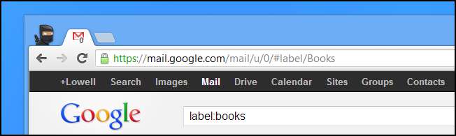Vous pouvez même utiliser la barre d'URL pour passer aux libellés personnalisés que vous avez créés, et Gmail agira comme si vous aviez effectué une recherche. Par exemple, l'utilisation de # label / Books au lieu de #inbox indiquera à Gmail d'afficher tout ce qui porte l'étiquette de livres.