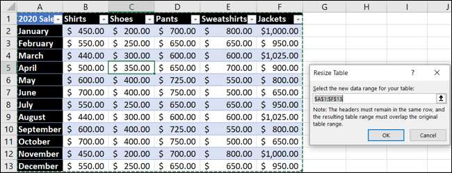 Utilisez la fonction de table de redimensionnement dans Excel [dix]