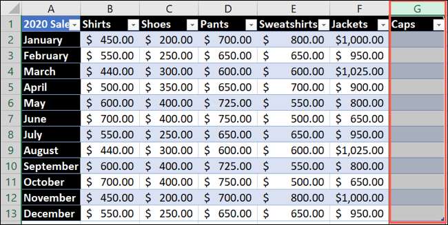 Pour ajouter une autre colonne, tapez vos données dans la cellule à droite de la dernière colonne. Pour ajouter une autre ligne, tapez les données de la cellule sous la dernière ligne. Hit Entrée ou retour.