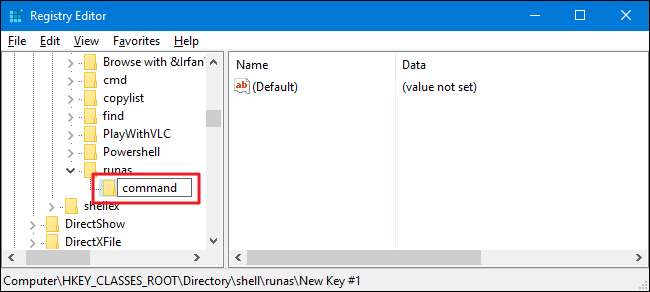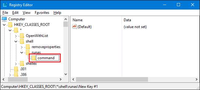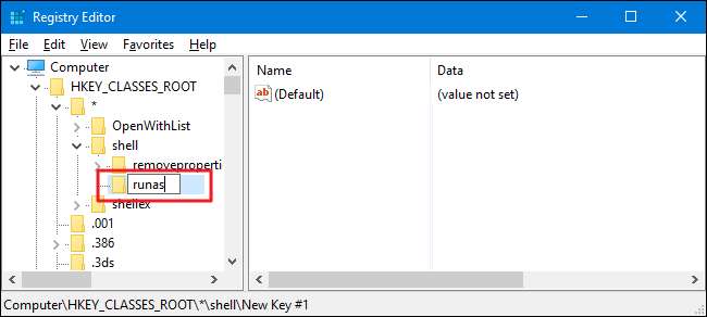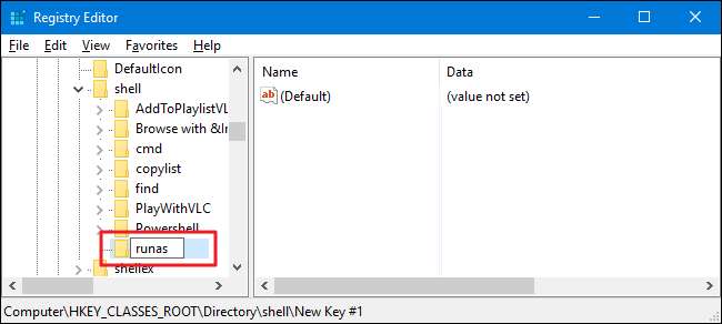 et choisissez Nouveau> Clé. Nommez la nouvelle clé «runas». Si vous voyez déjà un