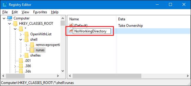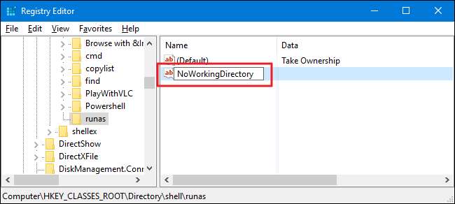 et choisissez Nouveau> Valeur de chaîne. Nommez la nouvelle valeur «NoWorkingDirectory».