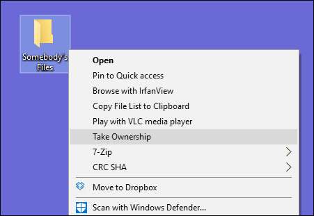 Ajoutez la commande «Prendre possession» au menu contextuel des dossiers
