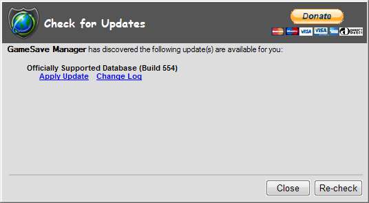 GameSave Manager vous demandera si une nouvelle version de la base de données est disponible; Cliquez sur " Appliquer la mise à jour ”Pour le télécharger et l'installer.