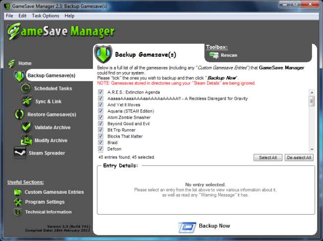 Si vous jouez à beaucoup de jeux PC, le passage à un nouvel ordinateur ou le reformatage peut prendre du temps. GameSave Manager fait le travail acharné de sauvegarde de vos parties sauvegardées pour vous - il peut même sauvegarder sur Dropbox.